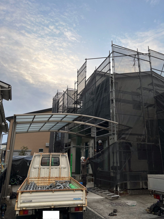阿蘇市のK様邸にて、新築足場工事を行いました。